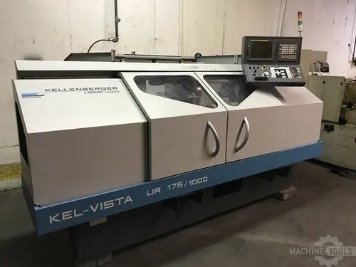 KELLENBERGER KEL-VISTA UR 175/1000 CNC OD/ID UNIVERSAL GRINDER, NEW APPROX 2005, 3 SPINDLE WHEELHEAD: OD STRAIGHT, OD ANGLE, AND ID ATTACHMENT, 13.78” SWING, 40” CENTER DISTANCE, AUTOMATIC B-AXIS SWIVEL OF THE WHEELHEAD EVERY 1 DEGREE, COOLANT SYSTEM, FANUC 21iT CNC CONTROL.